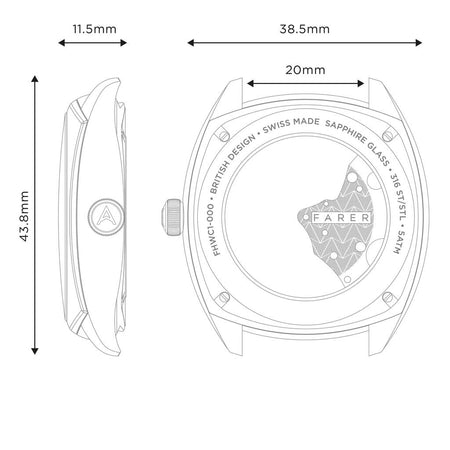 - Movement: Swiss Made Sellita SW288-1 Ma Elaboré Grade movement, blue screws with bespoke Farer embossed patterned bridge