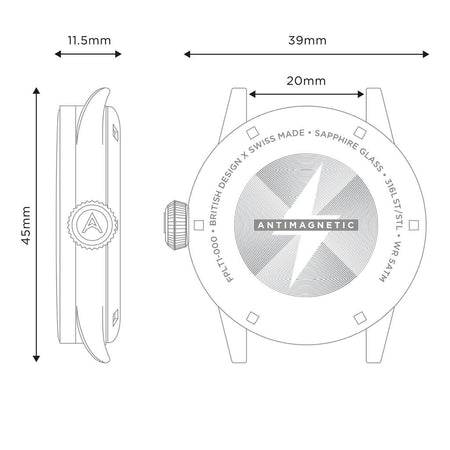 Flight Case - Each watch has a large 37mm dial housed in a snug 39mm case with short lugs, to deliver maximum dial size with no compromise on wearability. Cleverly achieving an exceptionally legible, yet remarkably comfortable watch for any wrist.
