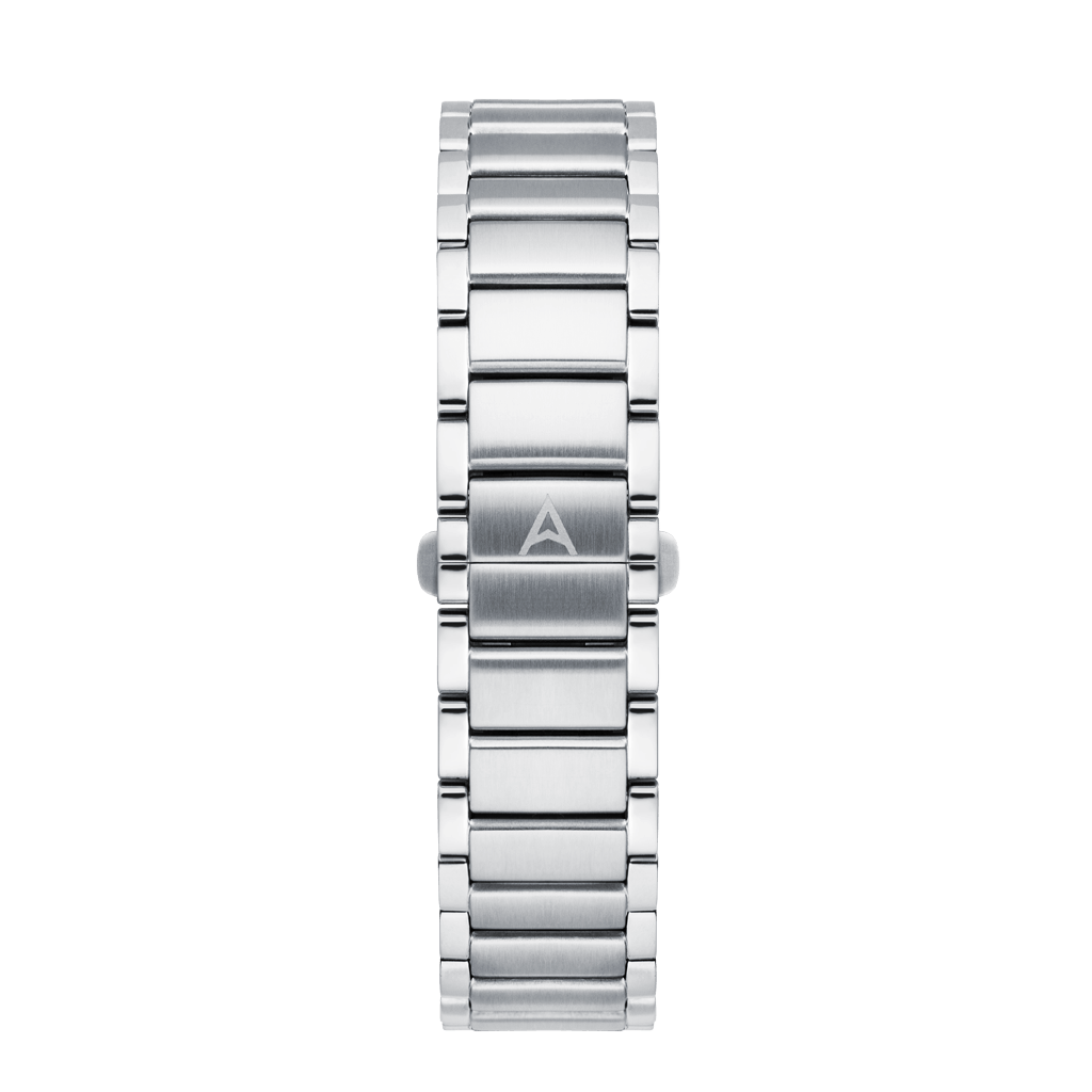Oyster-style stainless steel tapered bracelet with concealed push button butterfly clasp. The links are secured by screws for easy sizing, and feature brushed centre links with polished outer links. Designed to fit our Cushion Case and Moonphase collections, with flush-fitting end links and quick-release spring bars, that allow you to change the strap of your watch in seconds. We recommend taking your watch and bracelet to a reputable watch store or jeweller, who will measure your wrist and ensure an exact fit.