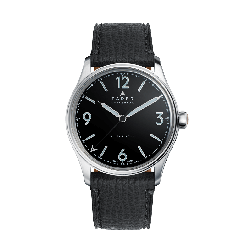 The Discovery Black Velvet offers an impeccable blend of understated elegance and functional aesthetics. The model takes its name from the dial colour, which is an incredibly rich matte black. This rich abyss black provides the perfect contrast for the hands and markers, whose polished surfaces light up white when they catch the light. Meanwhile, the seconds hand is jet black, with a white Farer ‘A’ at the tip that appears to float around the dial, as the stem of the hand blends into the dial. The only pop of colour on the Black Velvet comes from the ice-blue lume that fills the hands and markers. This Grade X1 Super-LumiNova glows brightly in the dark and ensures that the watch is legible at any time.