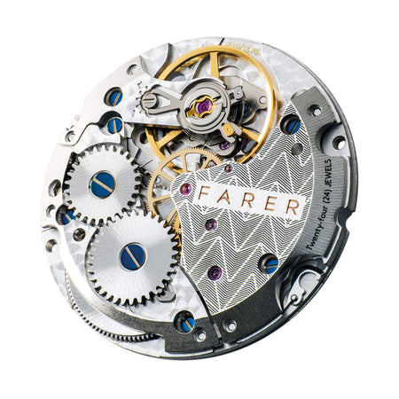 Finished in rich metallic tones of salmon copper and slate grey, the Durham is a prime example of how sleek and refined a cushion-cased watch can be. The sector dial is characterised by a striking raised circular ring, that contrasts sharply against the brushed salmon dial. The slate grey ring is also brushed, and on it are mounted glossy black batons and Roman numerals. The sharp dauphine handset is in a matching black finish, alongside the applied Farer logo beneath twelve o’clock. Lastly, there’s the seconds sub-dial at six o’clock, with a sunken ring punched through the rest of the dial and given a sharp engine-turned finish. The subtle details all come together to make up a design that gives a classical style a thoroughly contemporary update, that results in a watch that can be worn all day, every day.