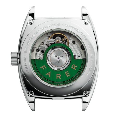 Vapour Coated Rotor - In a first for Farer, the movement’s winding rotor has been vapour coated to match the dial colour.